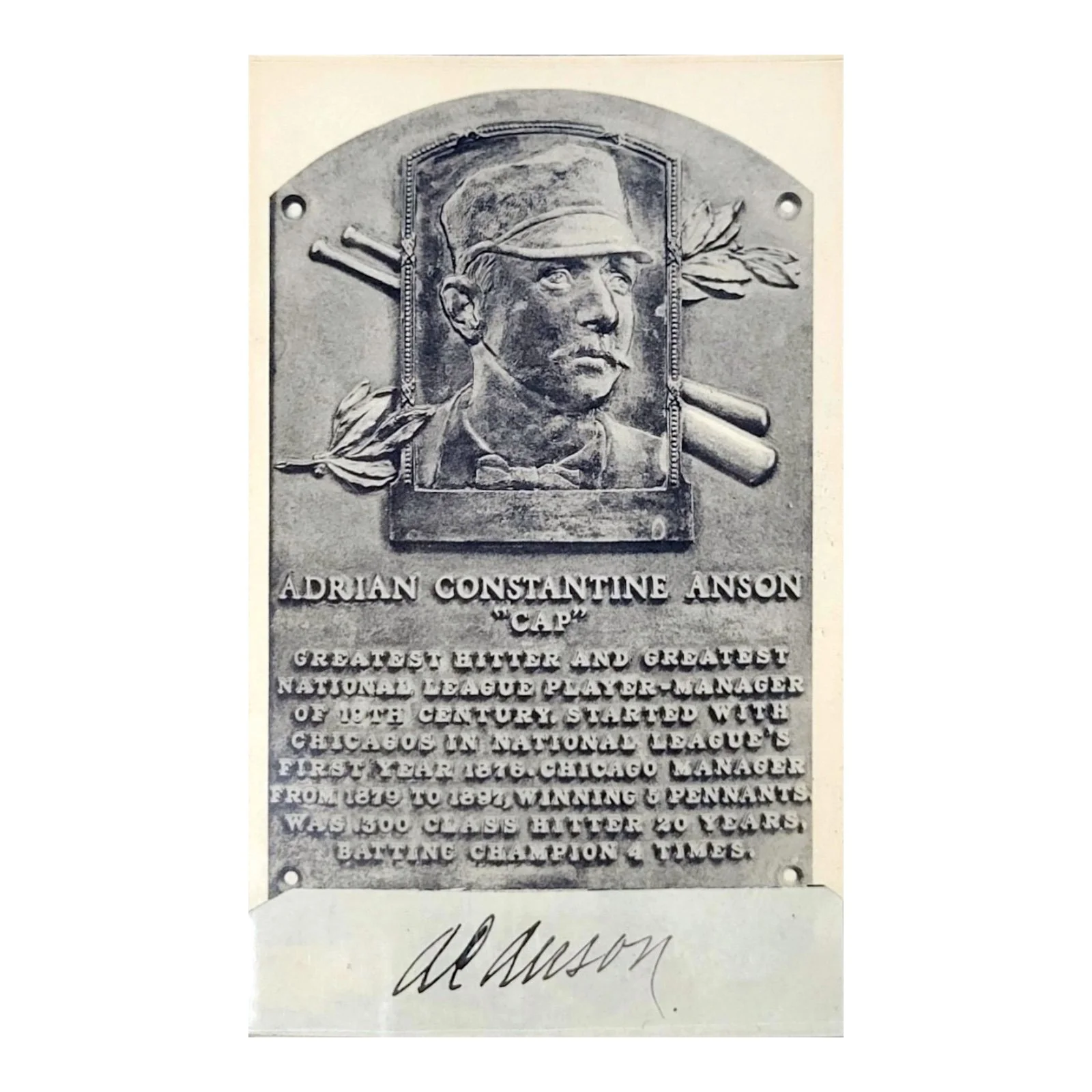 Cap Anson Signed Hall of Fame Plaque Postcard — One of the Rarest Autographs in Early Baseball History