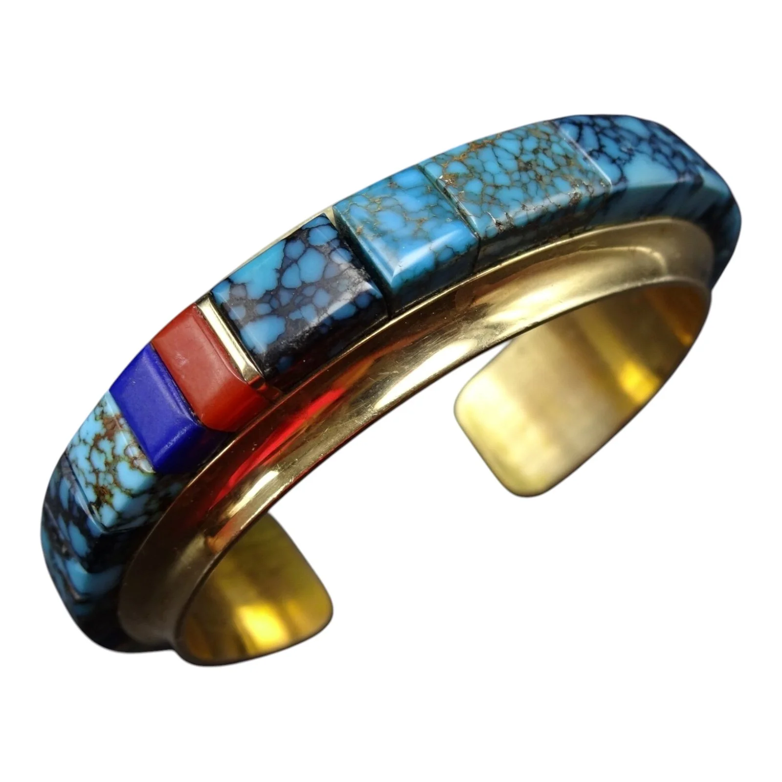Authentic gold-based Navajo cuffs by Beck Sr. can command between $3,000–$10,000, depending on gold content, inlay pattern, and provenance. Signed examples with distinctive turquoise matrix or gemstone variety tend to achieve higher premiums at auction.